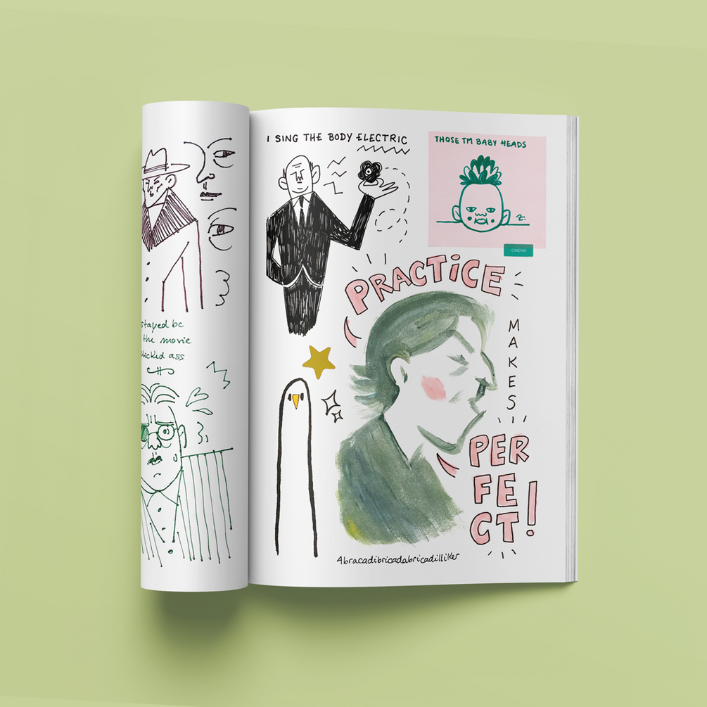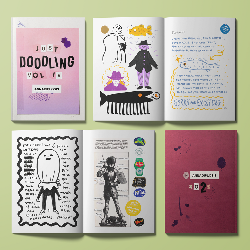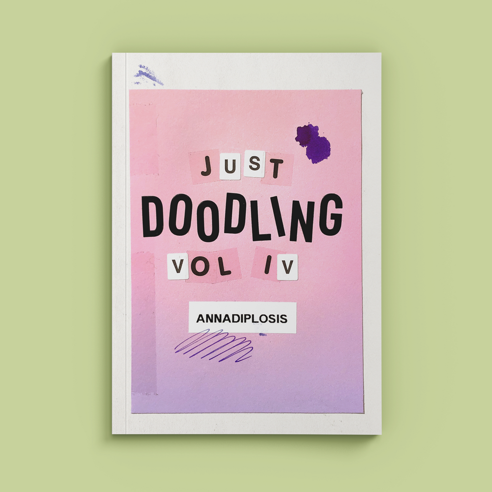 I thought I was a bit short on material for this year’s edition of Just Doodling until I started scanning my notebooks and realized I was about to release my biggest sketchbook compilation to date, partially because some drawings have snuck into journal entries, and I liked my junky collages well enough to add a few into the mix. As a result, Just Doodling has ceased to be just doodles; anything I deemed interesting enough for a compilation has made its way into the zine.